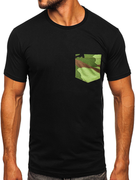 Čierne pánske bavlnené tričko s náprsným vreckom Bolf 14507