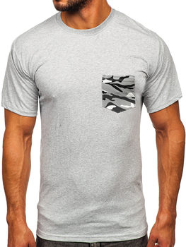 Sivé pánske bavlnené tričko s náprsným vreckom Bolf 14507