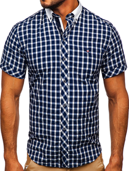 Blankytná pánska kockovaná košeľa s krátkym rukávom Bolf 201501