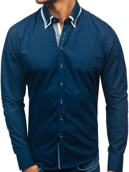 Tmavomodrá pánska elegantná košeľa s dlhými rukávmi BOLF 6857