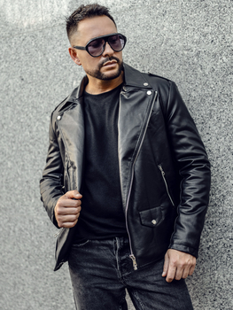 Čierna pánska koženková bunda Bolf 1122
