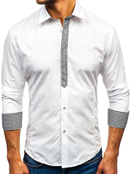 Biela pánska elegantná košeľa s dlhými rukávmi BOLF 4704