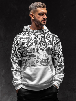 Biela pánska mikina s kapucňou a potlačou Bolf 6424