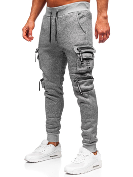 Sivé pánske teplákové jogger nohavice s cargo vreckami Bolf HSS296
