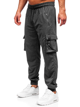 Antracitové pánske teplákové jogger nohavice s cargo vreckami Bolf JX6363