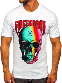 Biele pánske tričko s flitrovou aplikáciou a potlačou Bolf MT3037