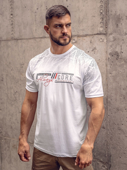 Biele pánske bavlnené tričko s potlačou BOLF 192379A